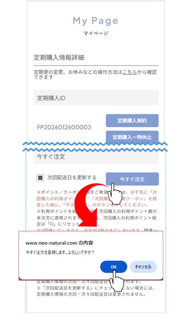 今すぐ注文ボタンを押してOKを選びます。