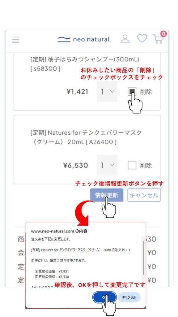 以上で直近1回分の定期便お届け内容の変更が完了です。