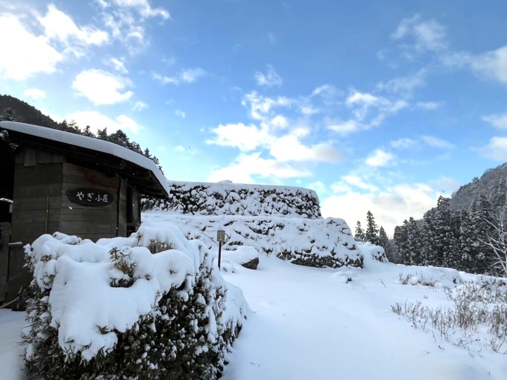 ネオナチュラル母袋有機農場は気温がぐんと下がり、雪景色になりました。