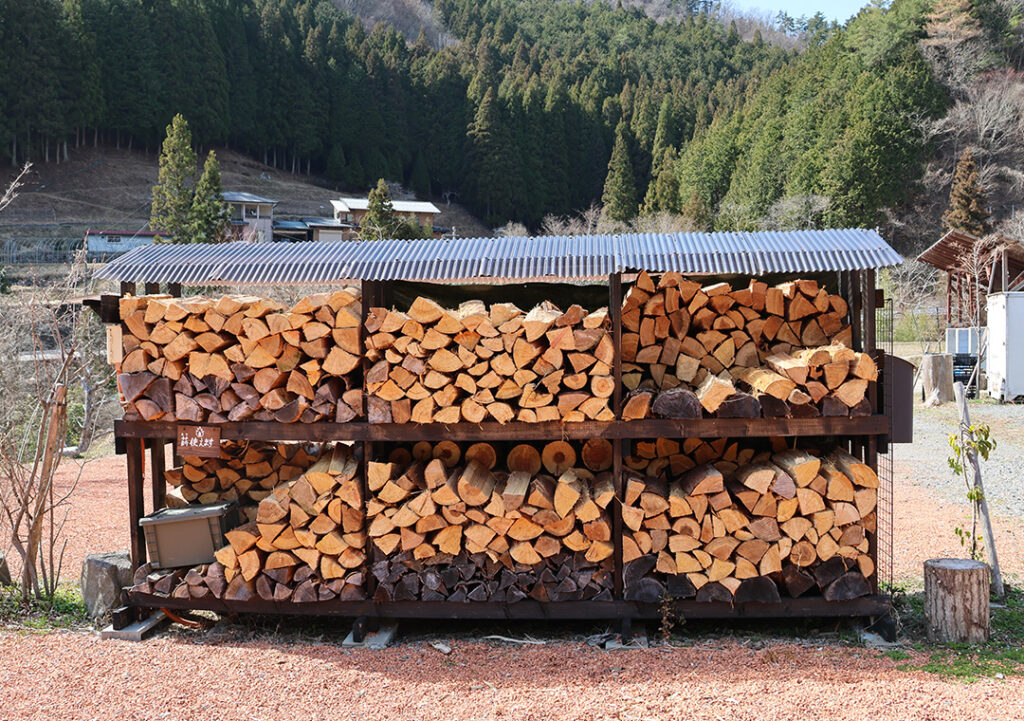 HOLY FUNGUSでは、すべてのキャンプサイトに専用の薪棚を設置しています。